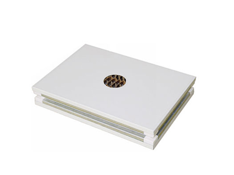 手工纸蜂窝夹芯板构成:彩涂板+阻燃性纸蜂窝芯材+彩涂板,采用手工制作工艺。
