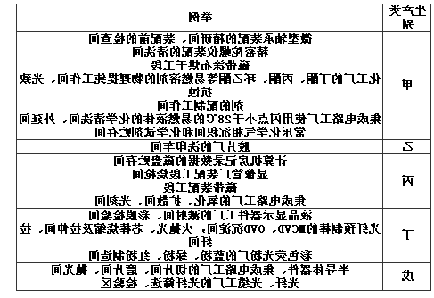 表B 洁净厂房生产工作间的火灾危险性分类举例: