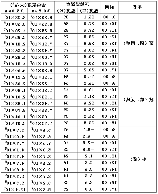 根据国内外测试资料,农村空气污染程度较低,其含尘浓度一般只相当于城市含尘浓度的几分之一,甚至低一个数量级。而城市工业区的含尘浓度又远高于城市市区及市郊。不同地区含尘浓度也不同,如表1~表3所示。不同季节的含尘浓度也不相同,表4所列是天津市某地段不同季节室外含尘浓度的实测值。