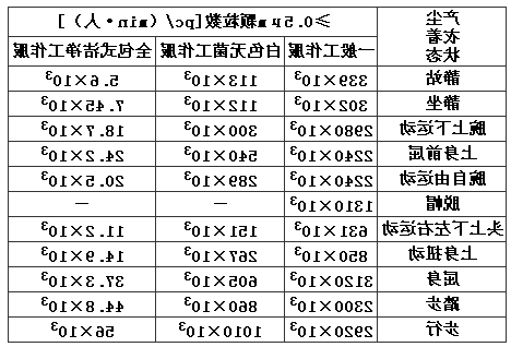 表3 大气含尘浓度平均值(大于或等于0.5μm)(pc/L)
