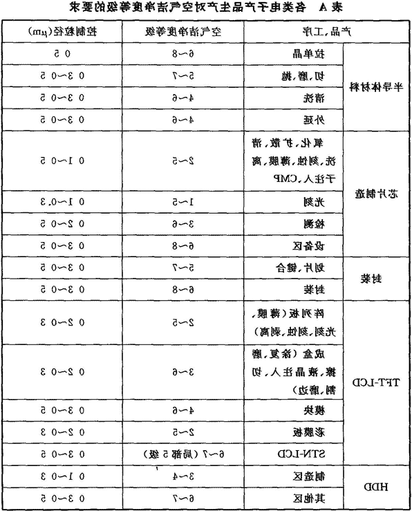 附录A 各类电子产品生产对空气洁净度等级的要求