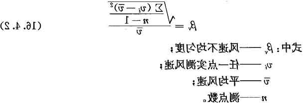16.4.2 当需对室内单向流品质作细致确认时,可测工作区(或规定高度)截面风速不均匀度。风速不均匀度应按附录E检验,并按下式计算,结果不应大于0.25。