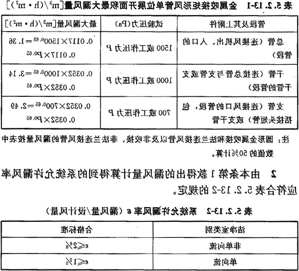 11 输送含有对人体有害、致病的化学或生物气溶胶的空气的风管,在承受一定的外力负荷(80kg模拟外力负荷+绝热材料负荷)的条件下,漏风量和漏风率仍应符合本规范表5.2.13的规定。