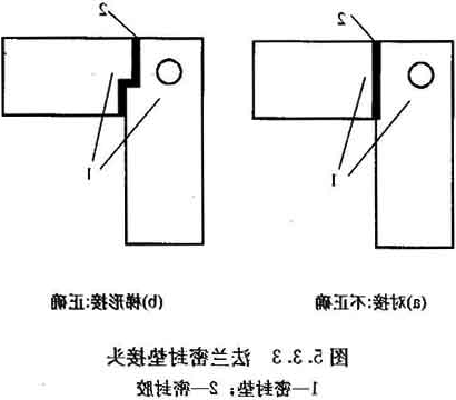 5.3.3 法兰密封垫宜减少接头,接头应采用阶梯形或企口形并避开螺栓孔(图5.3.3),也可采用连续灌胶成型或冲压一体成型的密封垫。