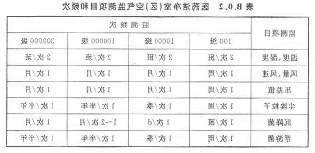1 应对医药洁净室(区)空气定期监测。监测项目和频次应符合表B.0.2的规定。特殊要求的医药洁净室(区)另行规定。