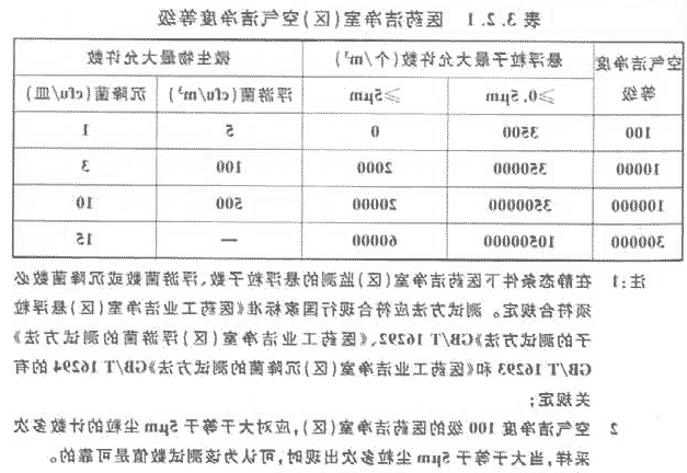 3.2.1 医药洁净室(区)的空气洁净度等级应按表3.2.1划分。