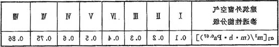 式中:α1——外门窗缝隙渗风系数[m3/(m·h·pab)],当无实测数据时,可根据建筑外窗空气渗透性能分级的相关标准,按表F.0.3采用;
