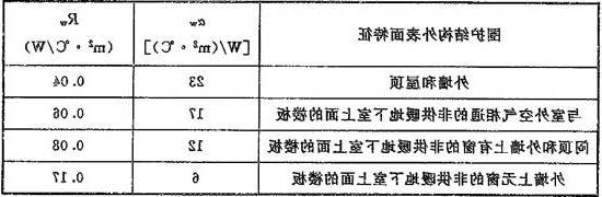 表5.2.4-1 外表面换热系数αw和换热阻Rw值