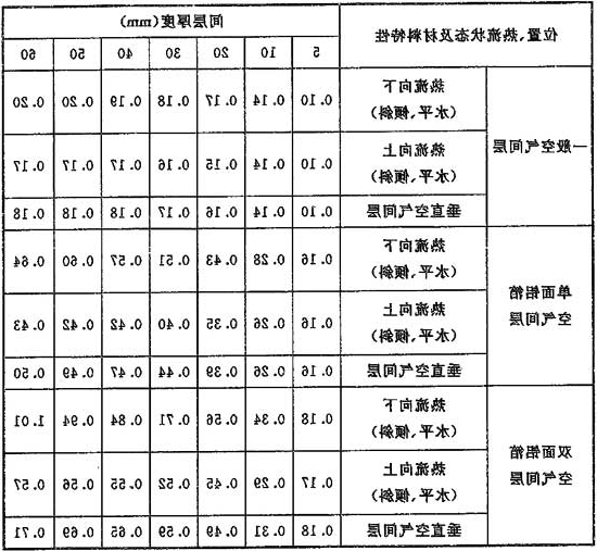 表5.2.4-3 封闭的空气间层热阻值Rk(m2·℃/W)