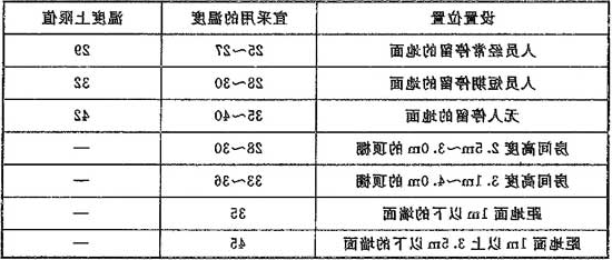 局部辐射供暖区面积与房间总面积的比值f | f≥0.75 | 0.55 | 0.40 | 0.25 | ≤0.20 |
