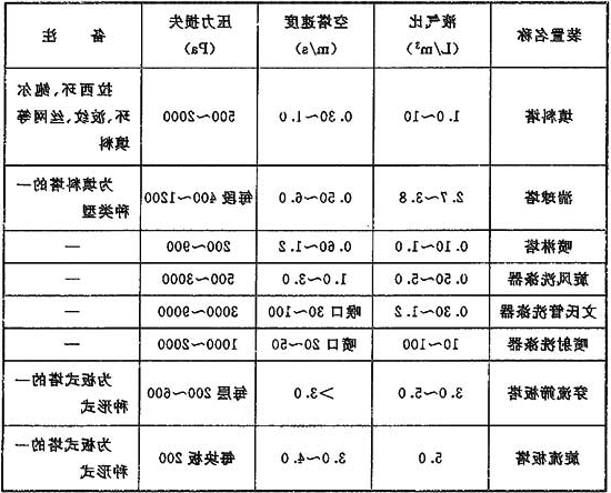 表3 各类布袋除尘器过滤风速和压力损失