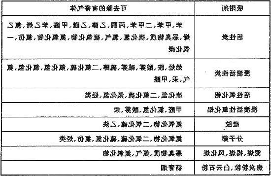 常用的吸附剂有活性炭、硅胶、活性氧化铝或分子筛等。活性炭是应用较广泛的一种吸附剂,特别是经浸渍处理后,应用更加广泛。硅胶等吸附剂称为亲水性吸附剂,用于吸附水蒸气和气体干燥。各种吸附剂可去除的有害气体见表6。
