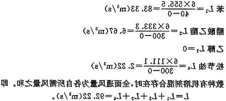 送风空气中上述四种溶剂的浓度为零,即y0=0。取安全系数K=6,分别计算得到各种溶剂蒸气稀释到最高允许浓度的所需风量为: