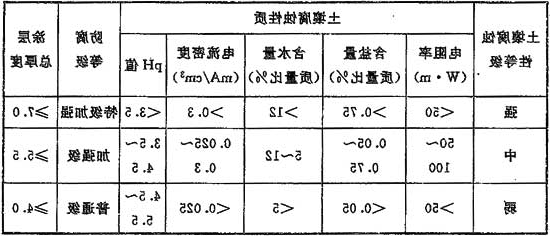 土壤腐蚀性等级及防腐涂料等级要求见表13。