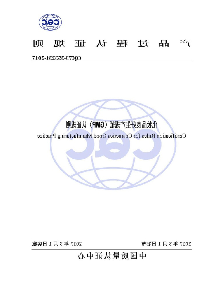 化妆品良好生产规范(GMPC)认证是依据我国相关法律法规及欧盟、美国等国家或地区对化妆品以及化妆品原料加工的相关要求所实施的CQC认证业务,旨在为生产经营企业提供符合GMP规范要求的第三方合格评价活动,以满足产品国际贸易、化妆品制造集团及消费者等相关方要求。
