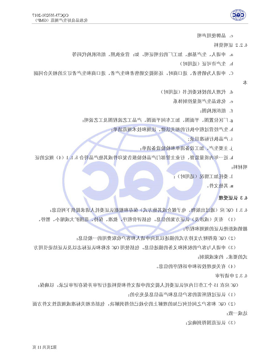 认证依据为美国农业部《Cosmetic Good Manufacturing Practice Guideline》, European Federation for Cosmetic Ingredients (EFfIC)-GMP for cosmetic ingredient,ISO 22716-2007《化妆品良好生产规范》、CQC73-353231-2016《化妆品认证实施规则》及适用的法律法规等。